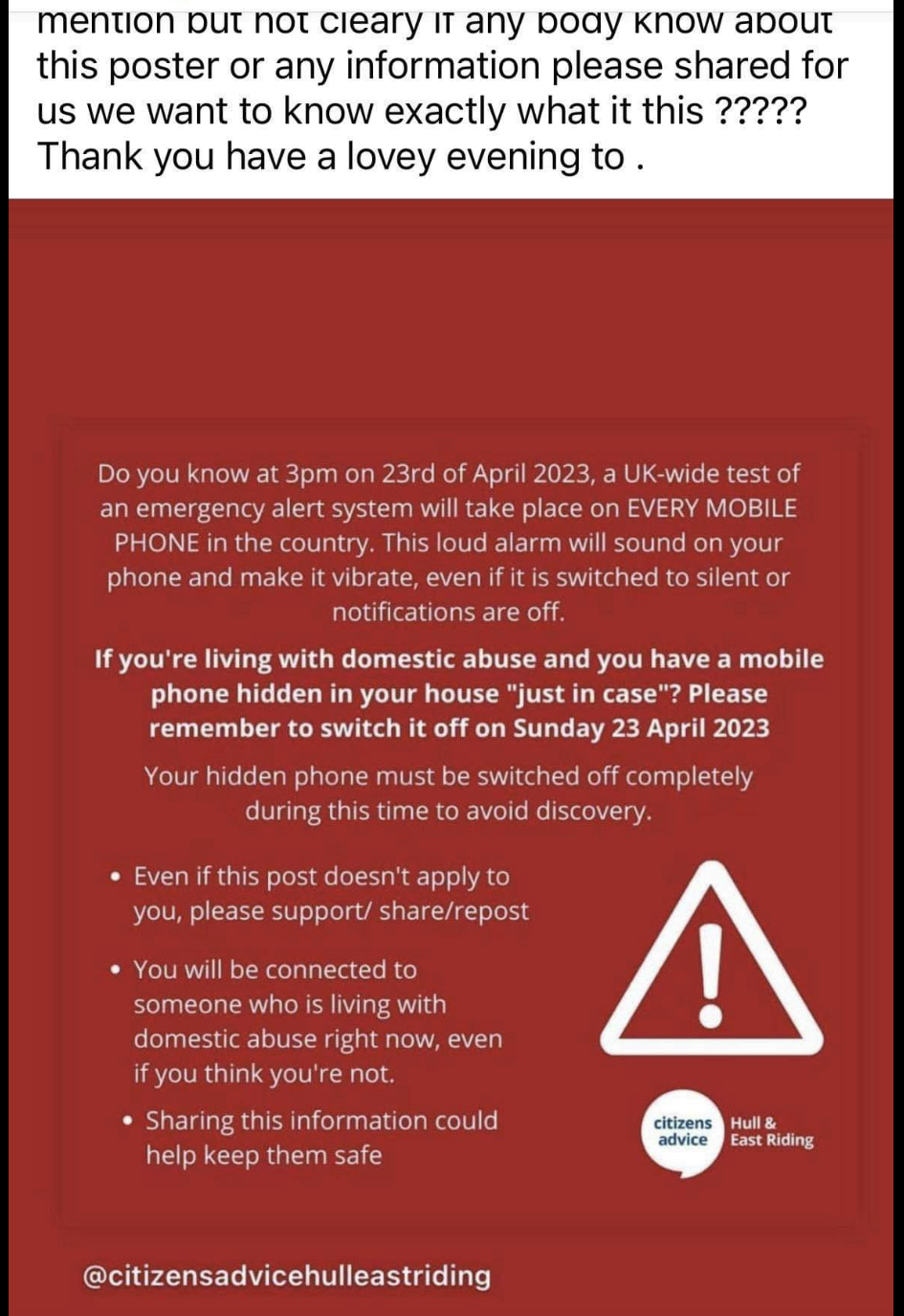 My daughter just sent me this, it was posted where we live, it says it can be activated even if it’s switched to silent or notification switched off 😟