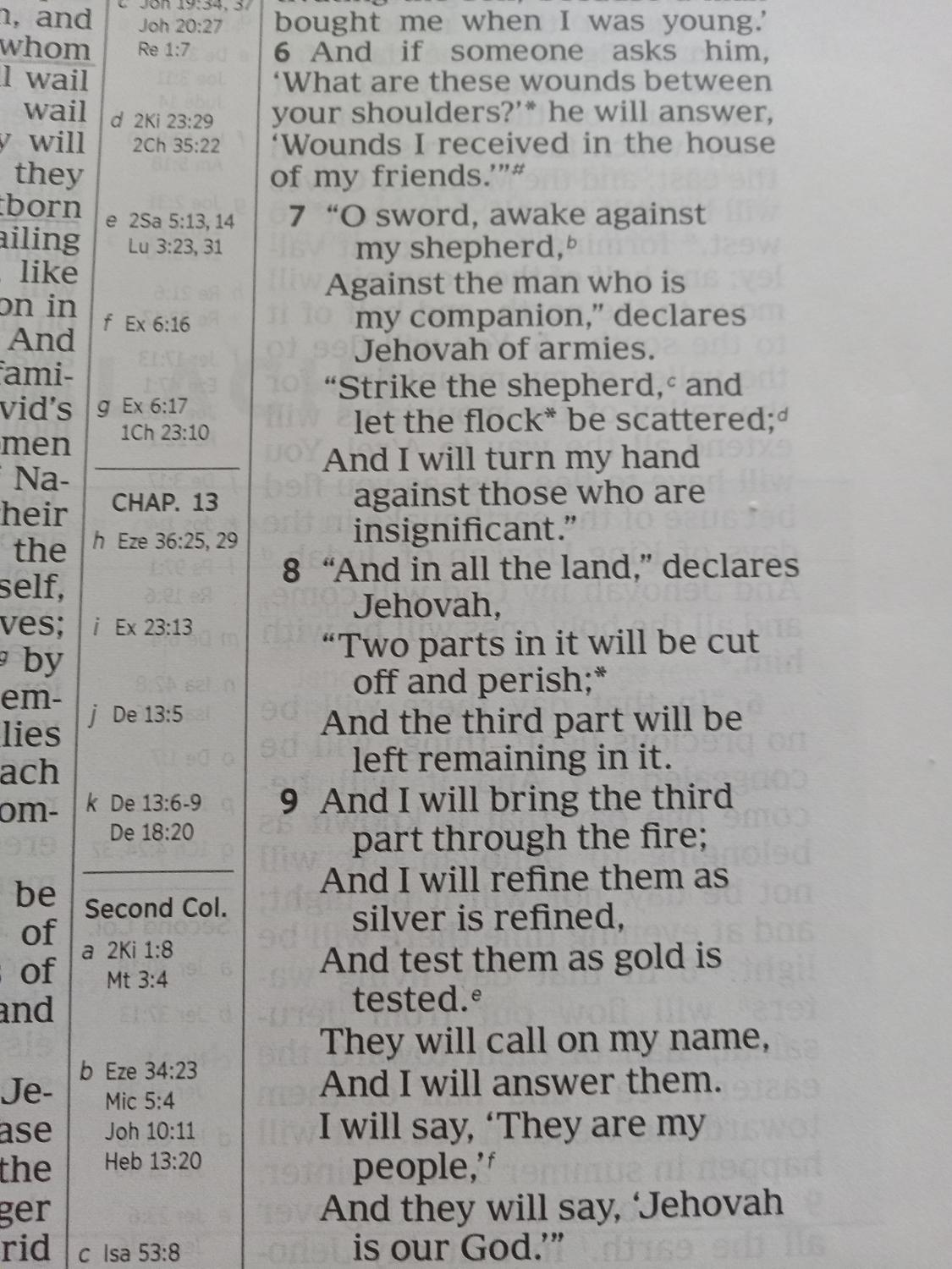 AdminThis scripture has always intrigued me, especially when there was a Watchtower article based around Zechariah 13:4 “In that day each of the prophets will be ashamed of his vision when he prophesies; and they will not wear an official garment of hair in order to deceive"