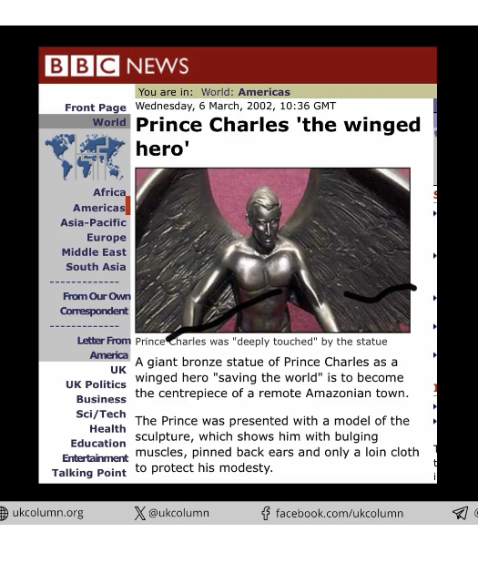 I remember seeing this years ago wondering why he was pictured with wings, there's a lot coming out saying that he's possibly the antichrist only time will tell.