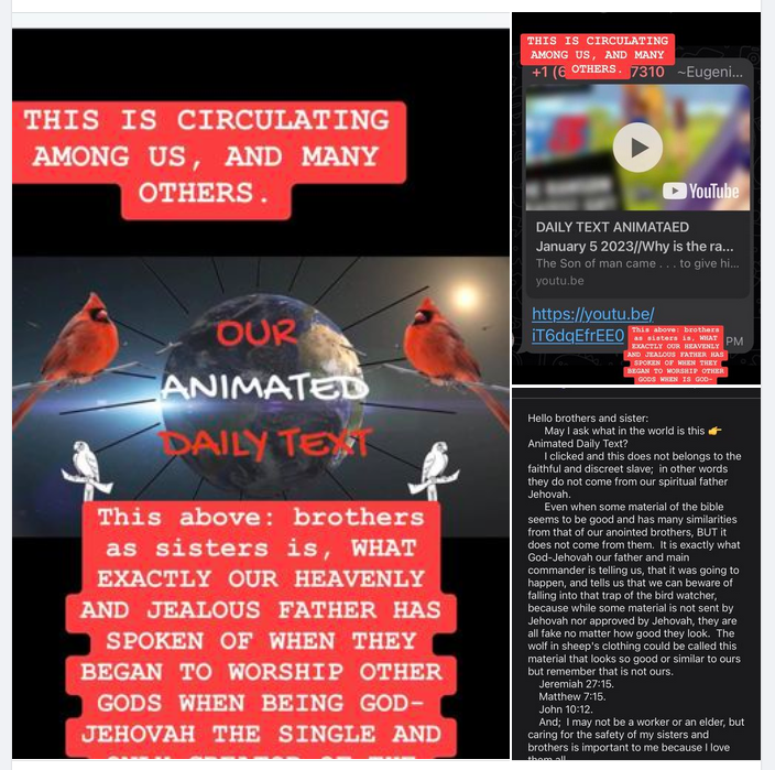 We are only expected to view watchtower publications when it comes to world conditions & updates, especially when its associated with the pandemic, but look where that has lead most of our brothers, they are unaware of the ... moreWhen I ran our Facebook group I had brothers tell me constantly that the animated day text was not approved by the GB, I told them the brother that creates them made it in this form to make it visually interesting for younger ones to enjoy and grasp, yet it was frowned upon.