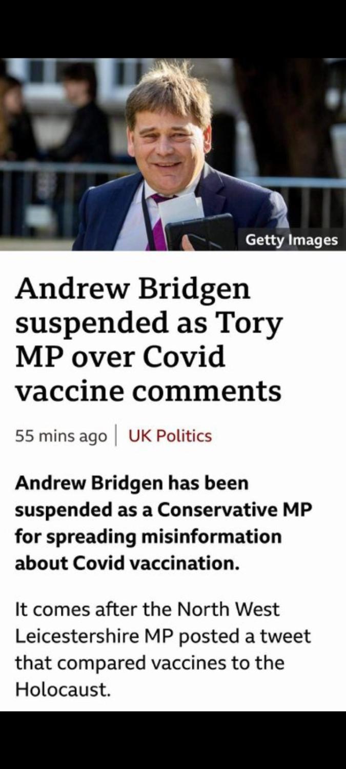 Poor guy, so they allow him to speak then suspend him, they only probably allowed him as there was only about four mp's present at the time. They're saying it's because he compared the plandemic to the Holocaust, I think they were glad he finally said something that they could get rid of him for. https://youtu.be/QBLpaaHc9gM