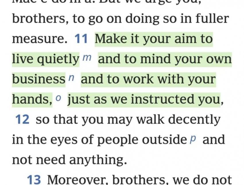 Anyone who starts critising you about choosing to not have the vaccine, or treats you like your a horrible person, share this scripture. What we choose to decide and what we choose to put in our bodies is no one else's business and Jehovah says so π It's 1 Thessalonians 4:11